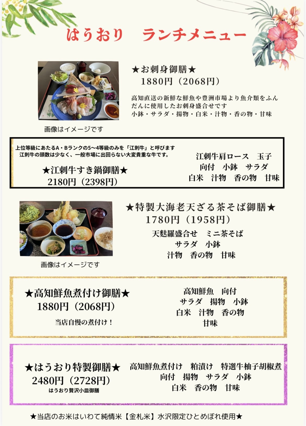 くずし割烹はうおりからのお知らせ